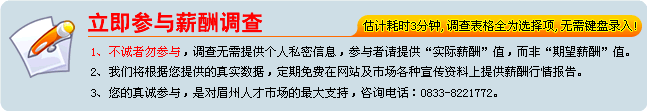 眉山本地薪酬調(diào)查,您的誠(chéng)信參與,是對(duì)我們的最大支持!